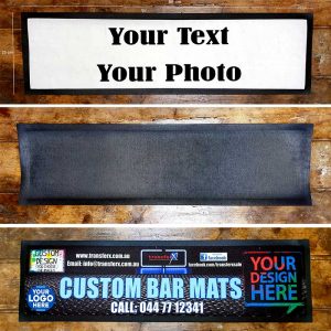 These bar mats work wonders with the right images in that mancave or pub bar. Commonly people ask us to print their pride and joy stored vehicles with some text and businesses and sports venues with their details and a few photos to place on their tables and bars.